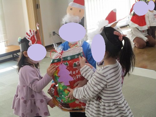 お当番さんが代表してサンタさんからのプレゼントを受け取ることになりました。