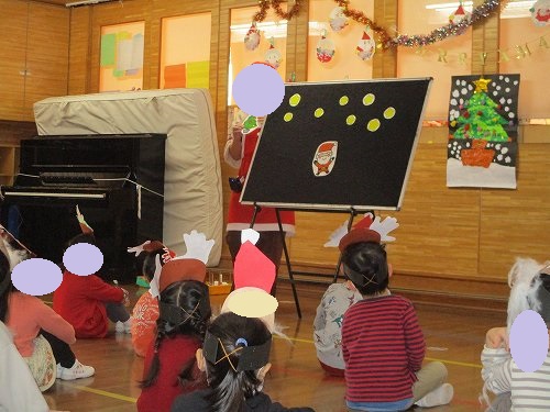 クリスマス会ではペープサートでクリスマスにまつわるお話を聞きました!