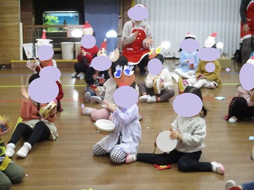 そして、年中さん、年少さんもクリスマスの音楽に合わせて楽器演奏を楽しみました!