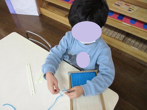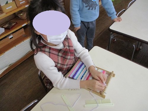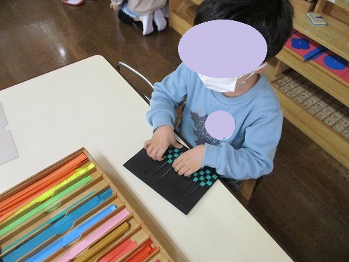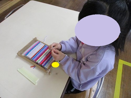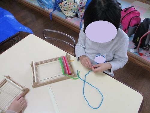 こちらのお友だちは毛糸の機織りを行っていたら「紙の機織りもやりたいなぁ~」と言って紙の機織りを行っていました♪